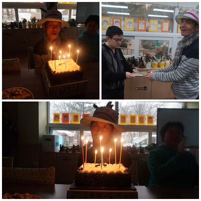 생일파티를진행하였습니다. 맛있는점심과 케이크 다과를하면서