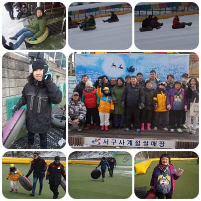 서구 눈썰매장에서 이용자분들과 신나게 눈썰매 타기를