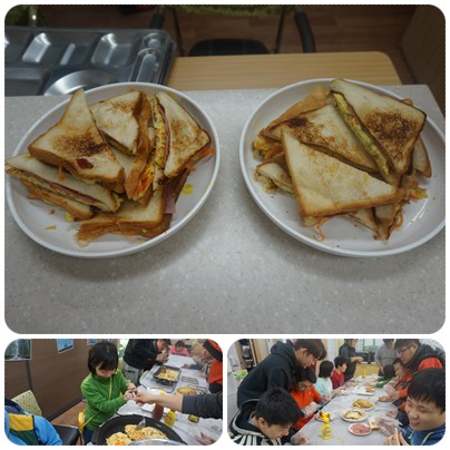 오늘 요리활동 시간에는 '계란야채 토스트' 를 만들어 보았습니다.