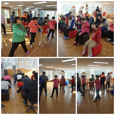 이용자분들에게  태권도 기본서기, 지르기 ,막기를 가르쳤습니다.