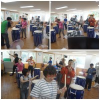 오늘 난타활동 시간에는 이미 배운 곡목에 맞추어 시작과 끝인사를 연습해 보았습니다. 스틱을 이용해 북을 치면서 ..