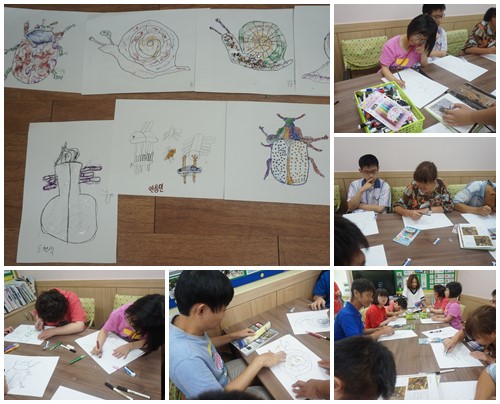이번주 미술시간에는 다양한 곤충들을 그리고 반짝이 풀로 꾸며 보았습니다~