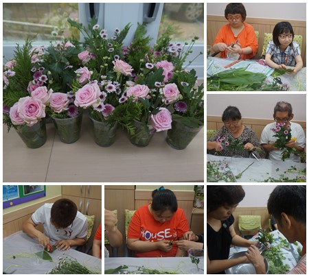 이번주는 엽란을 말아 국화, 장미를 꽃꽂이하고,