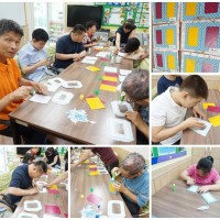 이번 달 공예활동 시간에는 북아트 액자를 만들어보았습니다. 하드보드지에 패브릭을 붙이는 간단한 방법으로 이렇게 작품이 탄..
