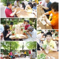 이번주 원예활동 시간에는 시원한 바람이 부는 나무그늘아래 야외 테이블에서 식물 장식을 만들어보았습니..