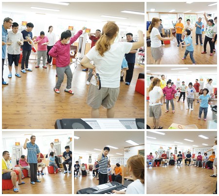 '다함께차차차' 노래를 부르며 리듬스틱 연주를 하였습니다