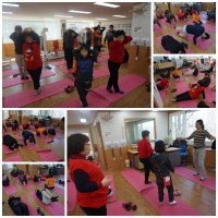 오늘 찾아가는 운동치료(스트레칭)시간에는 서서 상체 좌우 기울기, 자세 변형동작, 양팔 벌려 사이드런지 양손 허리잡고..