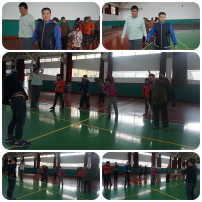먼저, 스트레칭으로 몸을 푼 뒤, 트렉을 돌고, 팀을 나누어 공굴리기