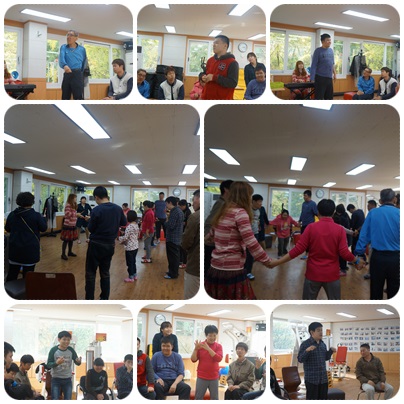 동료 이용자분들과 손도 잡고, 둥굴게 둥굴게 동작도 하며