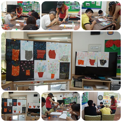 각자가 좋아하는 색상의 한지를 선택하여 화분도 그리고, 예쁜