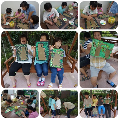각자가 표현한 나무 그림을 가지고 밖으로 나가