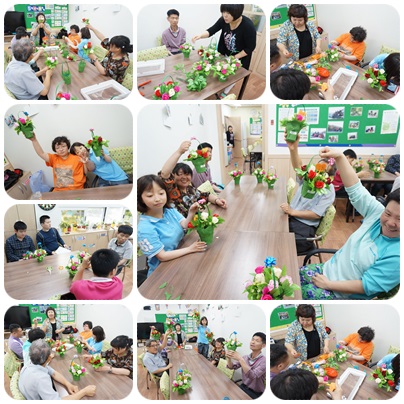 이용자분들도 어렵지 않은 꽃꽂이 활동에 즐거워하며