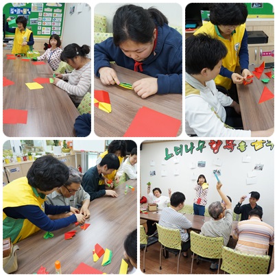 이용자들과 카네이션 꽃 접기 활동과, 부모님께 편지쓰기, 어머님 은혜