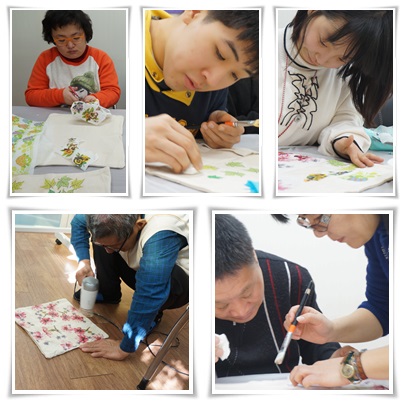 모든 이용자 분들이 쿠션에 넵킨을 오리고 붙여 넣는 활동에