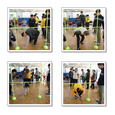 긴 봉을 조금씩 낮추어 봉을 넘어뜨리지않고, 그 안을 통과하는 활동인