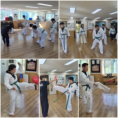 태권도의 기본자세 복습한 뒤, 스탭 밟기는 해보았습니다.