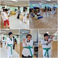 두번째 활동은 태권도였습니다. 태권도복으로 환복한 뒤, 스트레칭을 통해 몸을 유연하게 풀어주고 큰 기..