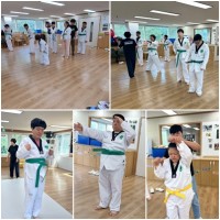 두번째 활동은 태권도였습니다. 태권도복으로 환복한 뒤, 스트레칭을 통해 몸을 유연하게 풀어주고 큰 기..