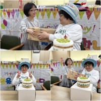 오늘 이** 이용자분의 4월 생일 파티가 있었습니다. 맛있는 케이크에 초를 켜고 느티나무 가족 모두 다 같이 생일 축..