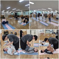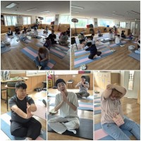오늘은 요가 매트에서 할 수 있는 간단한 스트레칭 방법을 배워 보았습니다. 혼자서 하기 힘든 이용자들은 강사님과 함께도와주..