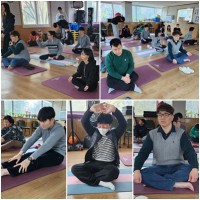 오늘 스트레칭-요가로 진행했습니다. 3분가량 명상을 하고 본격적인 활동에 들어갔습니다. 나비자세…