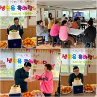 오늘 10월에 태어난 조** 이용자의 생일파티를 했습니다. 제과점에 방문해 직접 고른 케이크에 촛불을 켜고 모두 다 ..