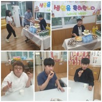 오늘 8월에 태어난 권** 이용자의 생일파티를 했습니다. 제과점에 방문해 직접 고른 케이크에 촛불을 켜고 모두 다 같..