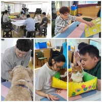 오늘 동물매개치료 시간에는 지난 수업시간에 배워보았던 '앉아','엎드려','점프' 등의 다양한…